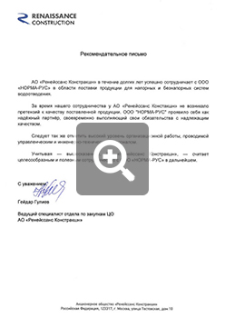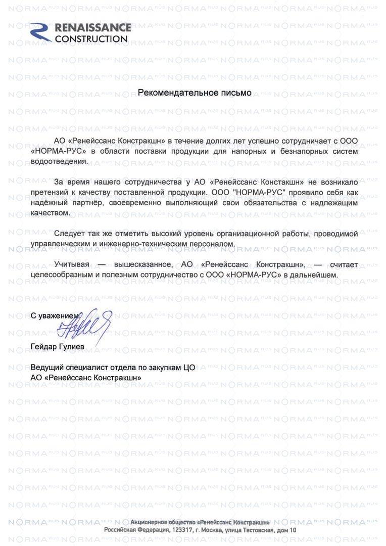 Рекомендательное письмо от RENAISSANCE CONSTRUCTION