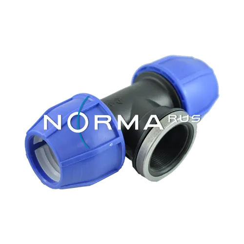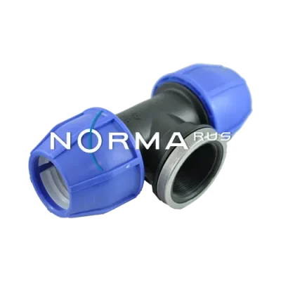 Тройник с внутренней резьбой FT 50 x 1 1/2″ NORMA из полипропилена для монтажа труб из полиэтилена высокой и низкой плотности. НЕ ПОДРАЗУМЕВАЕТСЯ использование для горячей воды.